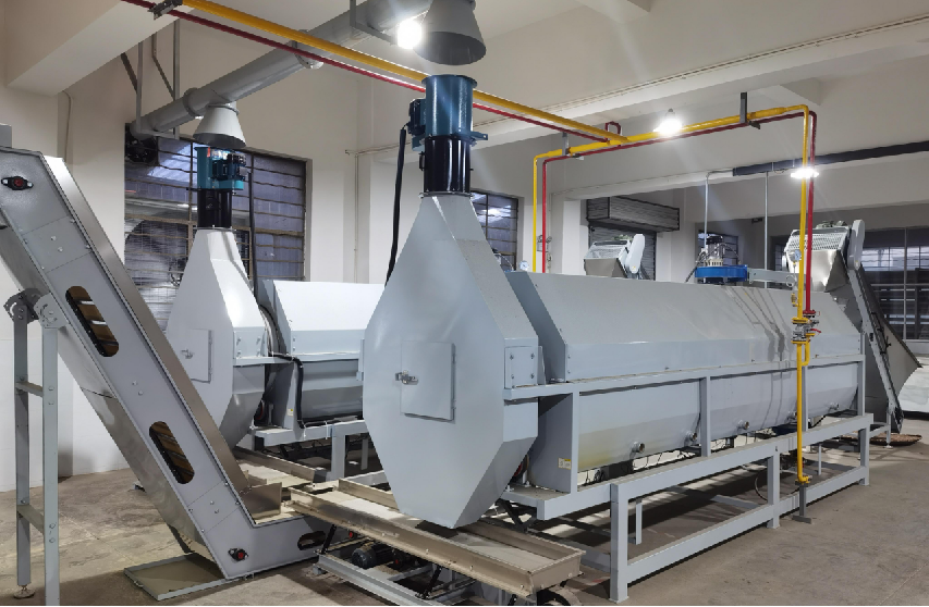 作業(yè)原理:機組配置溫度、速度、光電等傳感設(shè)備,配套自動勻葉、儲料等控制機組,實現(xiàn)對產(chǎn)能計量、平衡鮮葉流量、分段控制筒壁溫度、轉(zhuǎn)速及排濕風量等的自動控制。