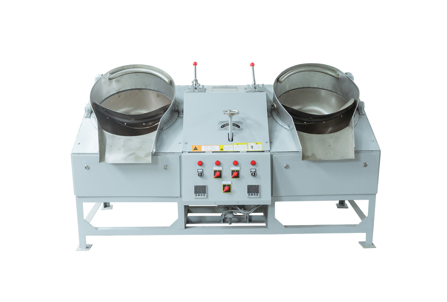 (2)、雙鍋曲毫炒干機(jī)適用于各類(lèi)卷曲型、球型名優(yōu)茶的做型炒制作業(yè)。目前市場(chǎng)上有50、60兩種鑄鐵鍋和壓制鍋兩種,壓制鍋外形更好,但在加熱后易變形,引起抄板和鍋?zhàn)涌ㄋ阑蜷g隙變大,從而增加碎茶或炒制茶葉外形不緊,鑄鐵鍋不存在這種現(xiàn)象,我公司一直使用鑄鐵鍋,50型采用掛擋調(diào)速、60型采用變頻調(diào)速。